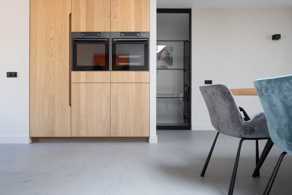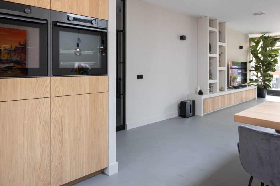 “Onze woning is gelijkvloers en we hebben de vloer door het hele huis gelegd. Dat maakt het super strak en rustig. In de zomer voelt de vloer lekker koel en in de winter is het genieten met de vloerverwarming.”