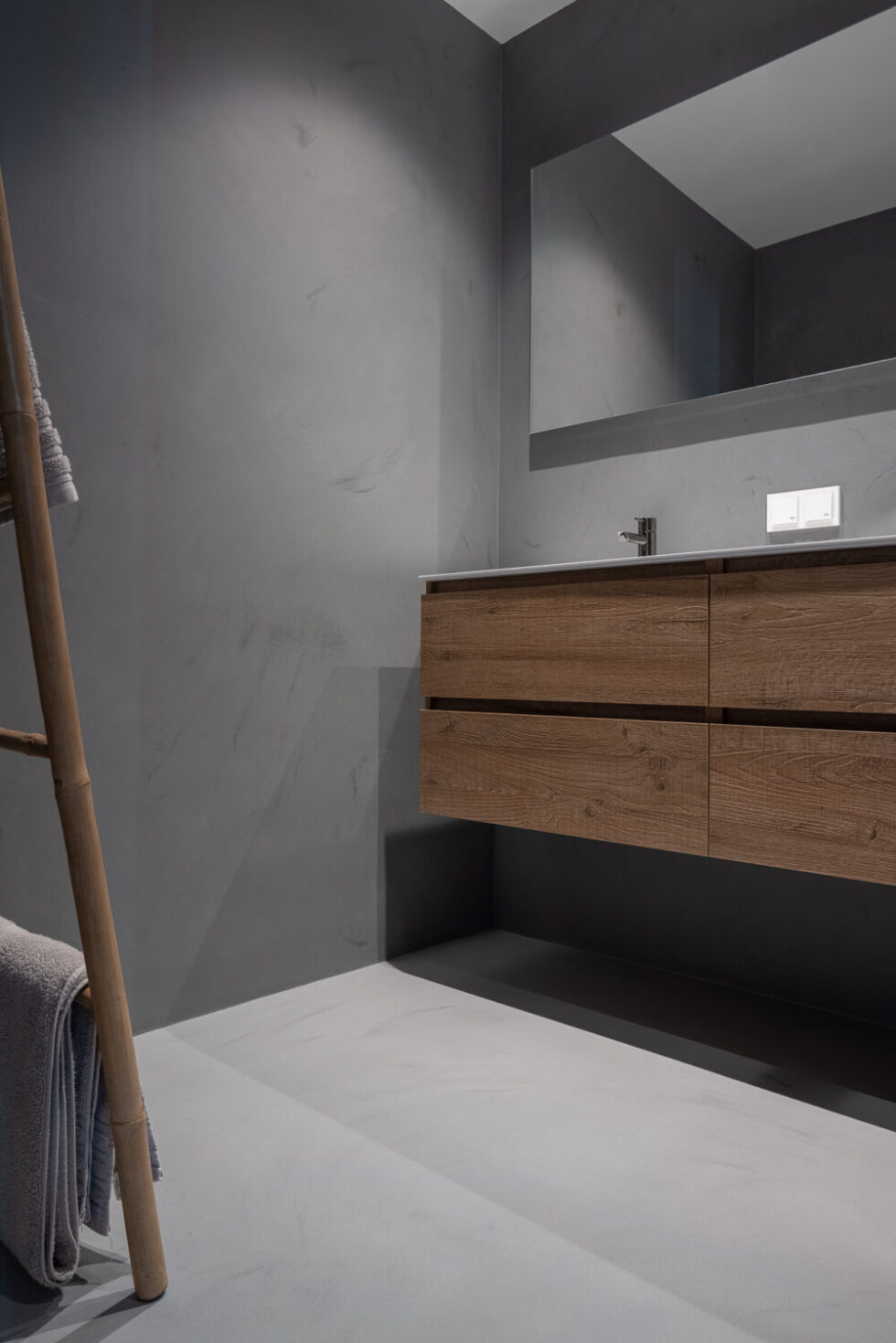 Voor een gezin in Amsterdam mochten we in hun gerenoveerde dubbele benedenwoning Corestone Classic in de kleur Sky Grey op de vloeren aanbrengen. Op de wanden voor in badkamers en toiletten kozen ze voor Corestone Classic Silky Screed.